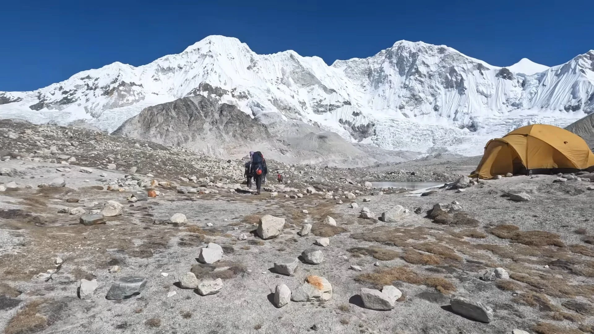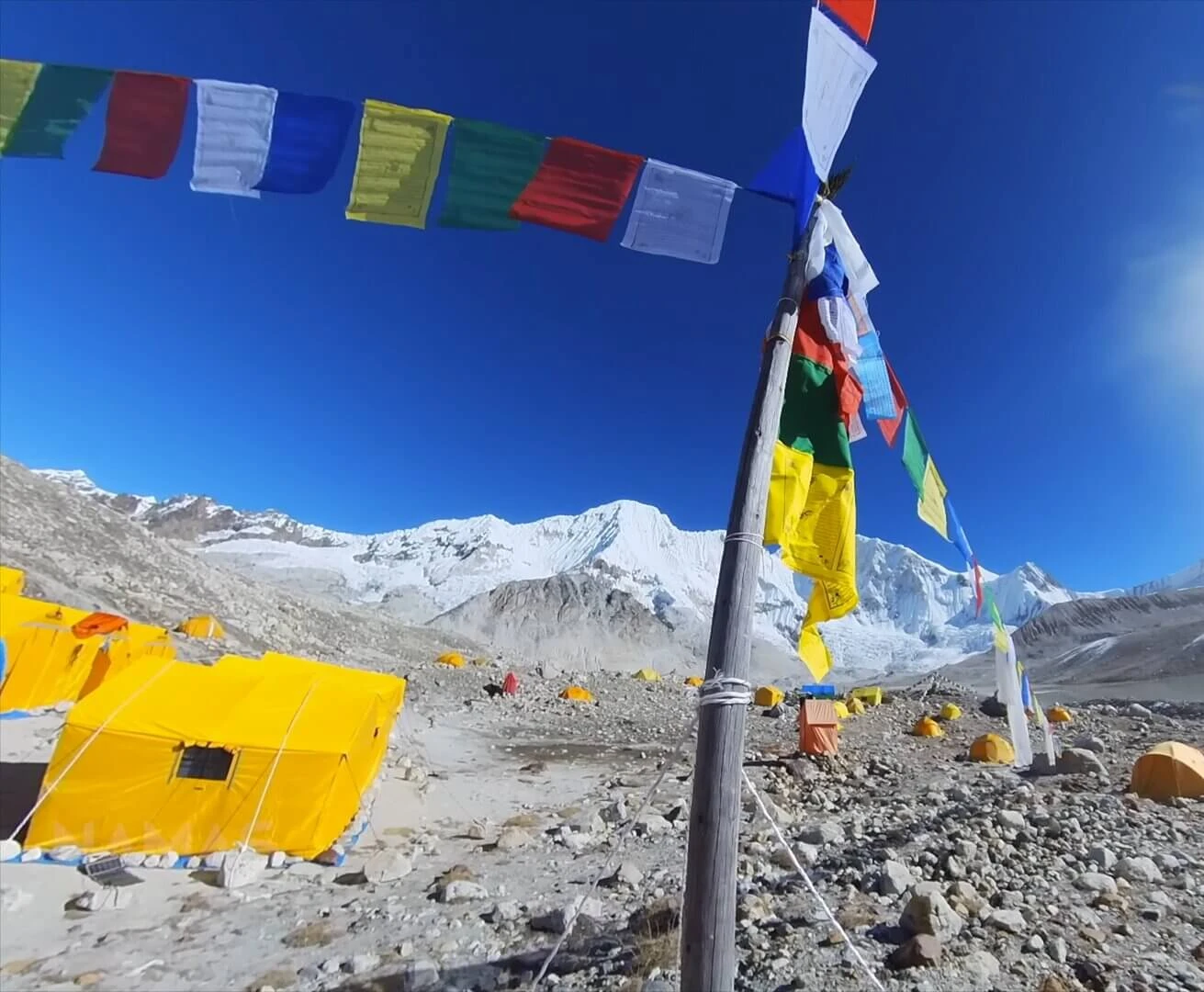 You will walk to the Khamedingma the beautiful alpine basin in the region which is known for its fully remote wilderness before the climbing starts. From this place you will have the proper experience of the ice falls and the glacier valleys. On the way you will cross the rocky moraines and the glacier sections. Our climbing crew will establish the tented accommodations in the Khamedingma.