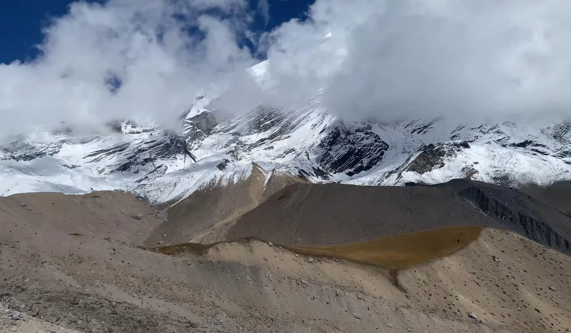 The summit attempt begins in the early hours, typically around 2:00–3:00 AM, to take advantage of stable morning weather. Climbers face steep snow slopes, mixed rock sections, and glacier crossings before reaching the summit. From the top, the panoramic views of Annapurna, Dhaulagiri, and surrounding Himalayan peaks are breathtaking. After celebrating the achievement, climbers descend carefully back to High Camp, ensuring energy is conserved for the return journey.