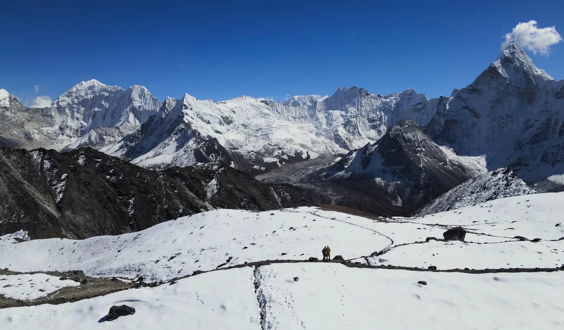 From the Island Peak summit (6,189 m), climbers enjoy 360-degree panoramic views of the Himalayas, including Everest, Lhotse, Makalu, Nuptse, and Ama Dablam, along with glaciers, alpine valleys, and the surrounding Khumbu region. It’s a rewarding experience and a perfect introduction to climbing high-altitude peaks, including the world’s 8000m giants.
