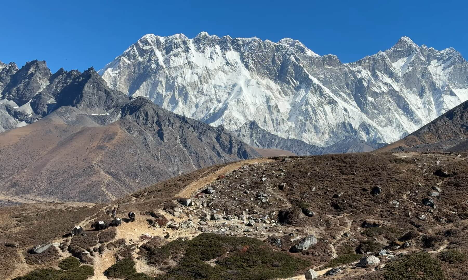 Trek through a stunning high-altitude landscape, passing yak pastures, icy streams, and rocky terrain. Views of Ama Dablam dominate the skyline as you approach Dingboche, a village nestled in a picturesque valley surrounded by mountains. Overnight at a teahouse in preparation for further altitude gain.