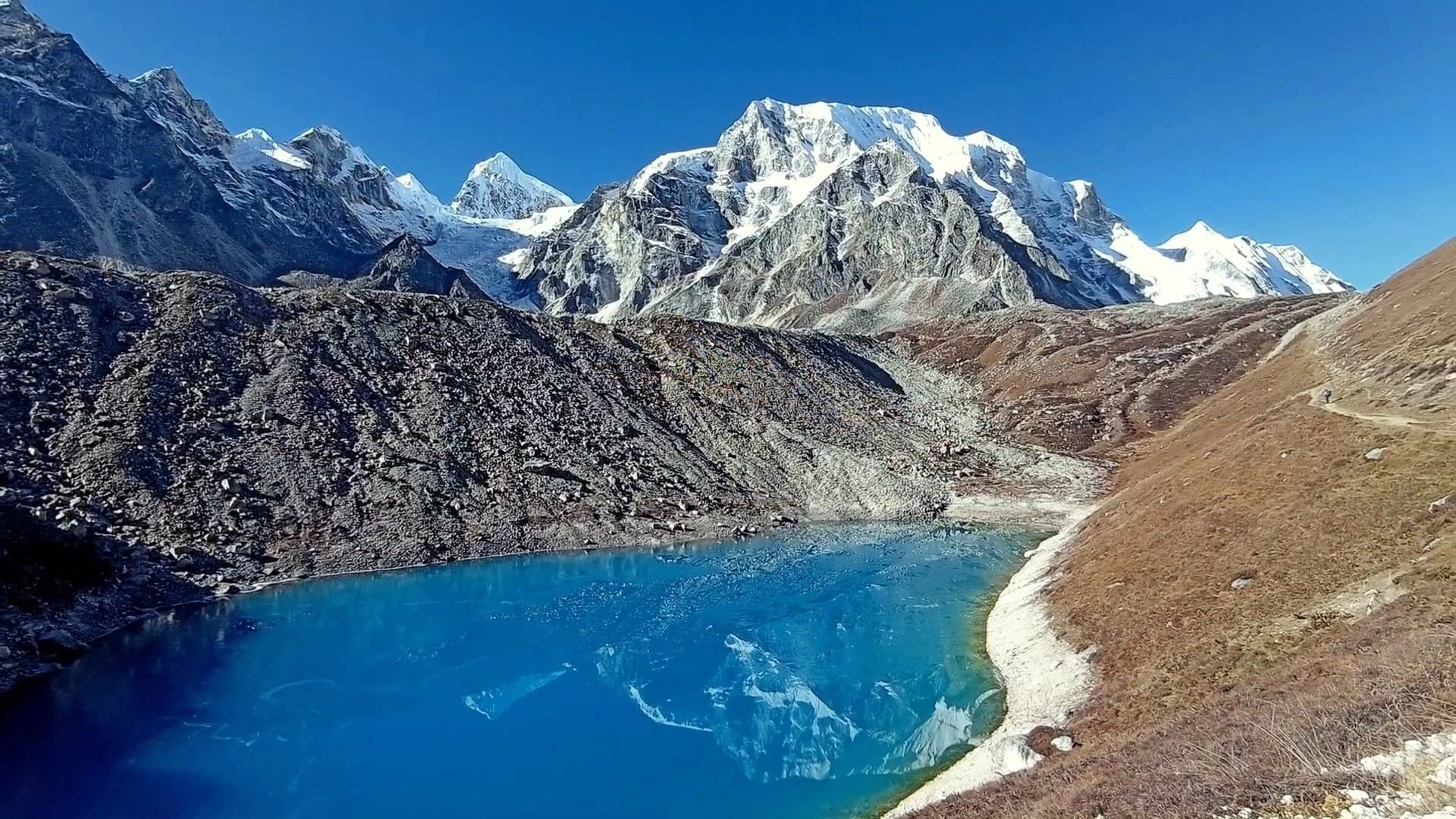 After completing your climb, you descend toward Bimtang. The trail offers stunning views and a sense of accomplishment as you leave the high alpine zone behind.