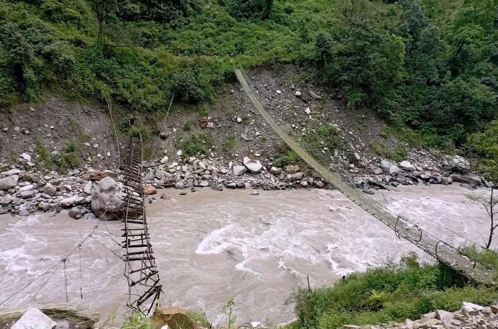 You continue descending through forests and villages, rejoining greener landscapes. The air becomes thicker, and the journey feels more relaxed as you approach Dharapani.