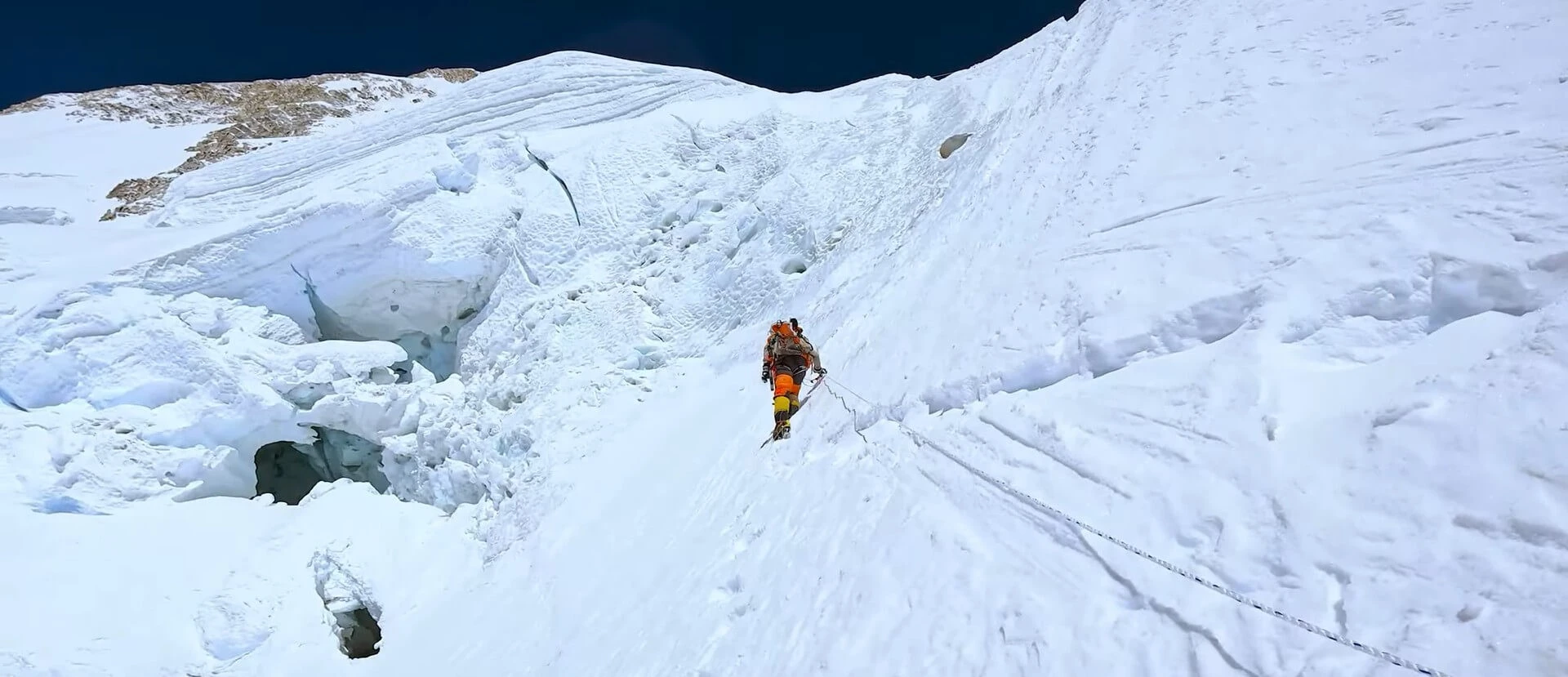 | Overall Character | Moderate snow slopes (25–40°), short rock section, wide summit plateau. Fixed ropes in place. | Steeper, more technical terrain with ice cliffs, rock bands & crevasses. Limited fixed ropes. |