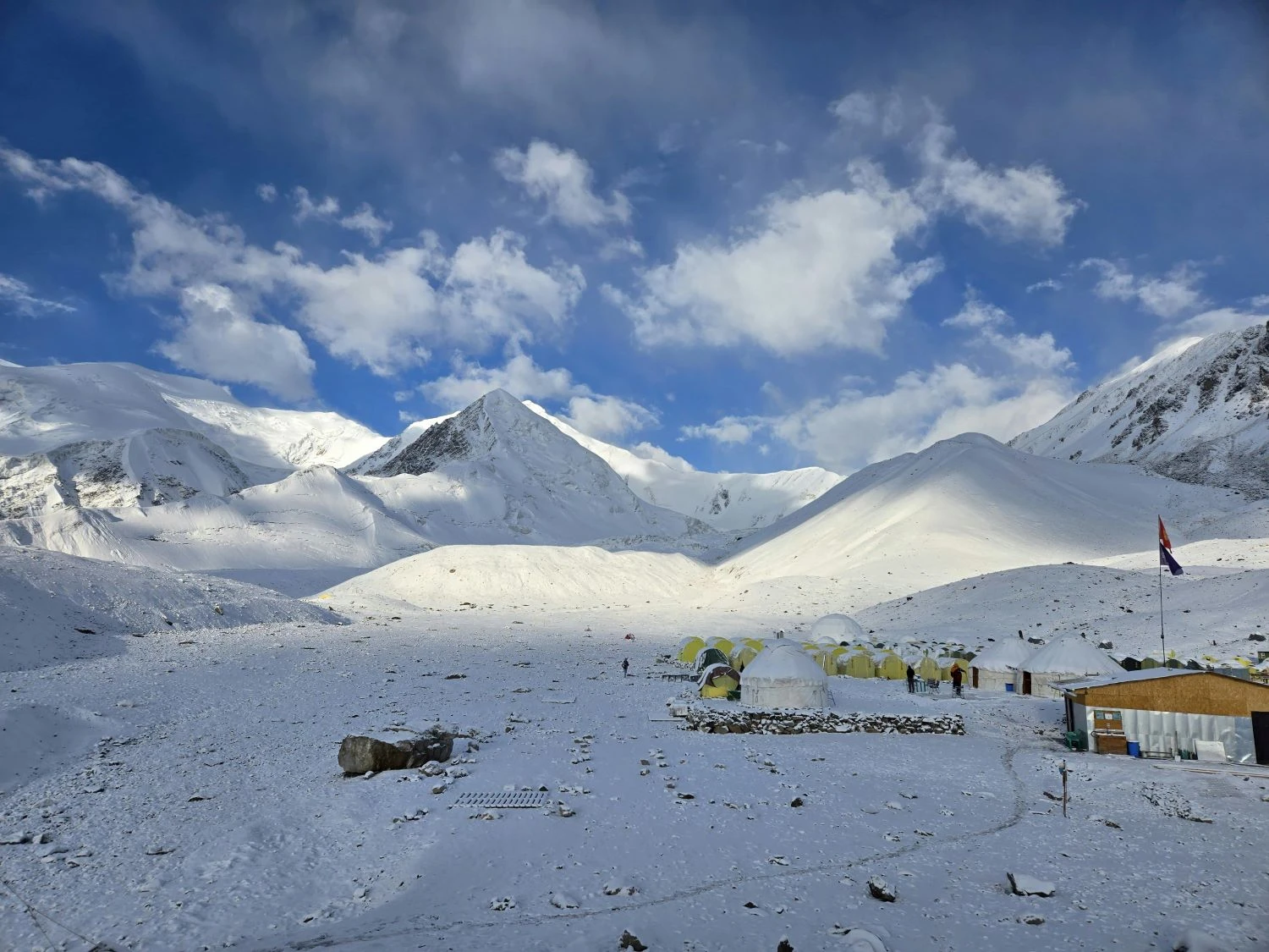 Today is another important acclimatization day at the Chinese Basecamp. You will spend the day resting, hydrating, and taking short walks around the camp. The team will organize climbing gear, loads, and food supplies for higher camps. Your guide will closely monitor your health and oxygen levels. Overnight stay in tents at Basecamp.