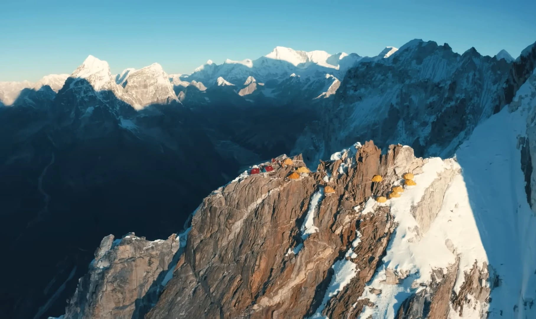 Exposure increases significantly on this section. Steep ice and mixed ground lead to High Camp II, positioned on a narrow shelf with dramatic views in every direction. Climbing at this altitude demands efficiency and calm. Arrive, melt snow for water, eat well, and rest ahead of summit day.